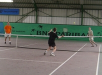 | Après le repas pendant que certains terminent les matchs de doubles les autres en profitent pour faire un match. | |||||