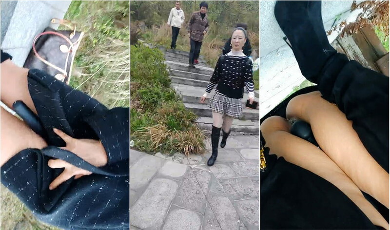 熟女大姐很風情,立春踏青野山頭戶外大膽露出,遇到遊玩壹家人趕忙穿衣